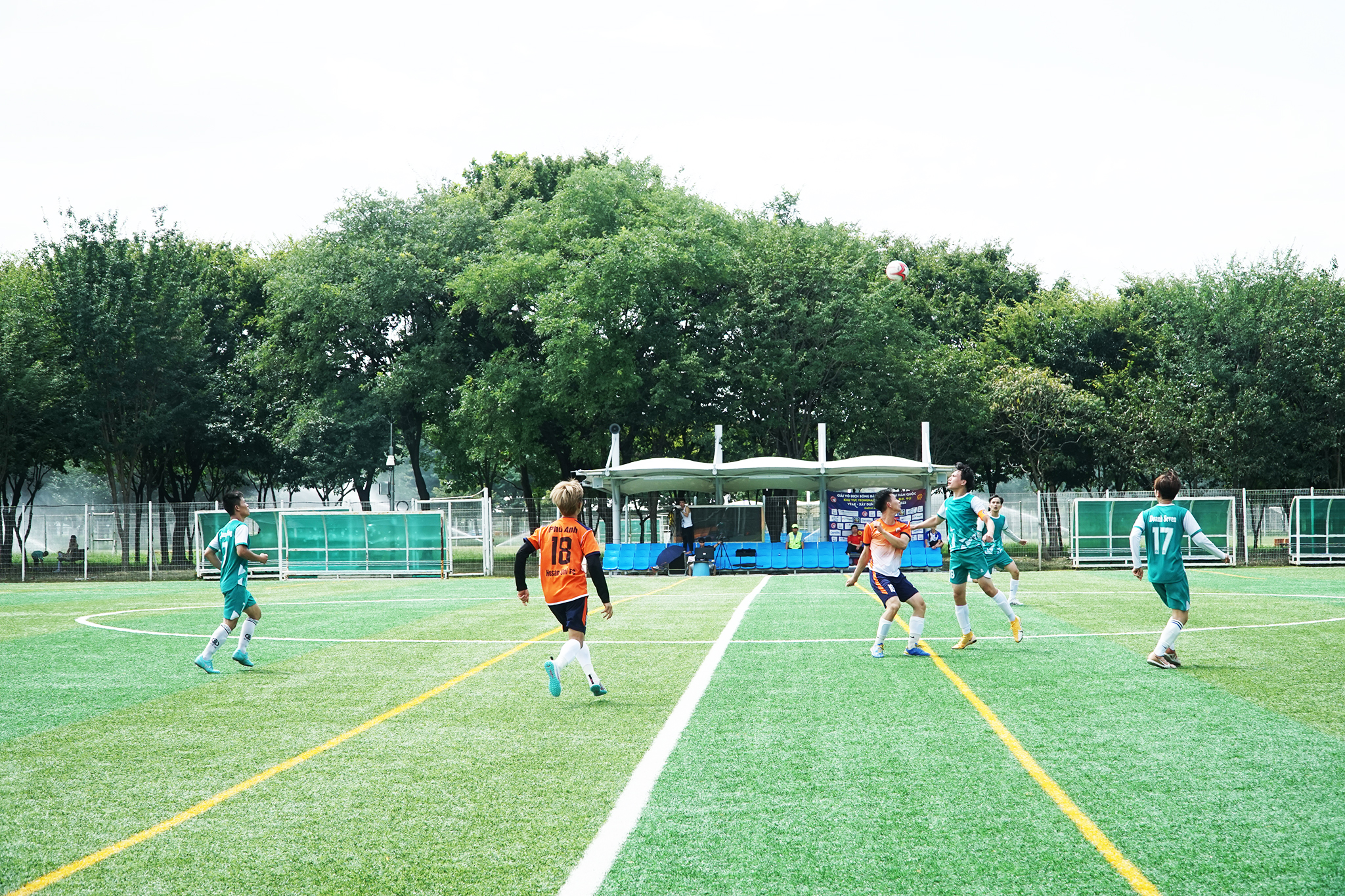 Một pha bóng trong trận tứ kết giữa Hosan Univ và Chirwon. |