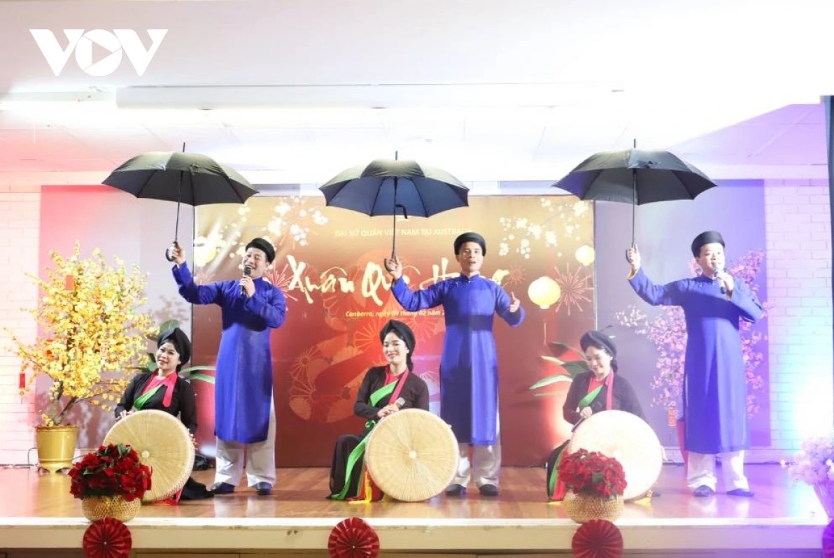 Hôm qua (09/02), tại thủ đô Canberra, Australia, Đại sứ quán Việt Nam tại Australia tổ chức chương trình Xuân Quê hương mừng Xuân Ất Tỵ 2025. Sự kiện thu hút khoảng 300 khách tham dự, gồm kiều bào tại Australia và bạn bè quốc tế, đại diện các phái đoàn ngoại giao nước ngoài tại Australia.