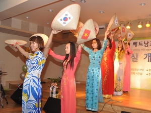 Tiết mục biểu diễn múa Nón của cô dâu Việt ở Hàn Quốc (Ảnh: Anh Nguyên/Vietnam+) |