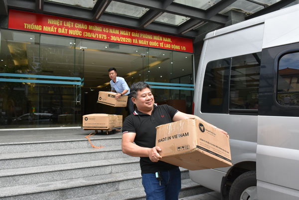 Cán bộ, nhân viên Ủy ban chuẩn bị chuyển khẩu trang cho kiều bào ở nước ngoài. |