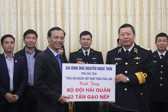 Cũng trong dịp này, Công ty cổ phần Công nghệ dược phẩm quốc tế ITP Pharma gửi tặng bộ đội hải quân 200 hộp trà trị giá trên 30 triệu đồng. Ông Nguyễn Ngọc Thìn, Phó Chủ tịch Tổng hội người Việt Nam tại Thái Lan, gửi tặng 2 tấn gạo nếp Thái Lan để bộ đội gói bánh chưng trong dịp Tết Nguyên đán sắp tới.