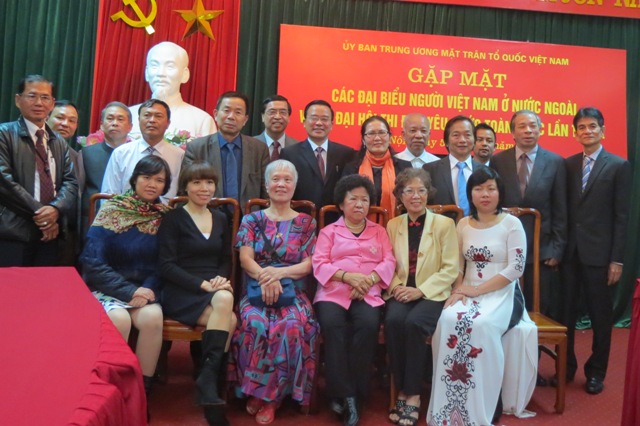 | Đoàn kiều bào chụp ảnh cùng lãnh đạo Ủy ban Trung ương Mặt trận Tổ quốc Việt Nam |