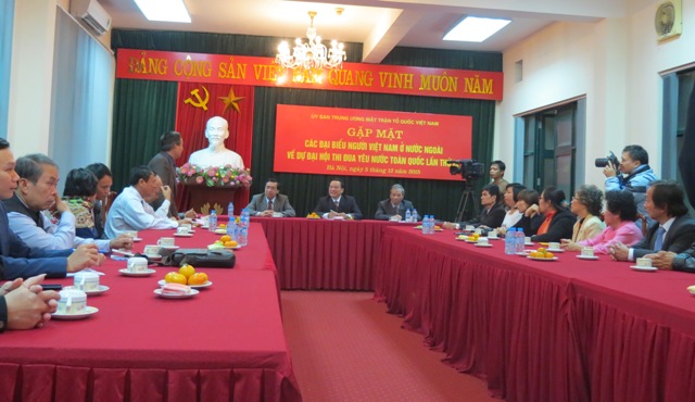 Chiều tối nay, (5/12/2015), lãnh đạo Ủy ban Trung ương Mặt trận Tổ quốc Việt Nam gặp mặt đoàn kiều bào tiêu biểu về dự Đại hội thi đua yêu nước toàn quốc lần thứ IX.