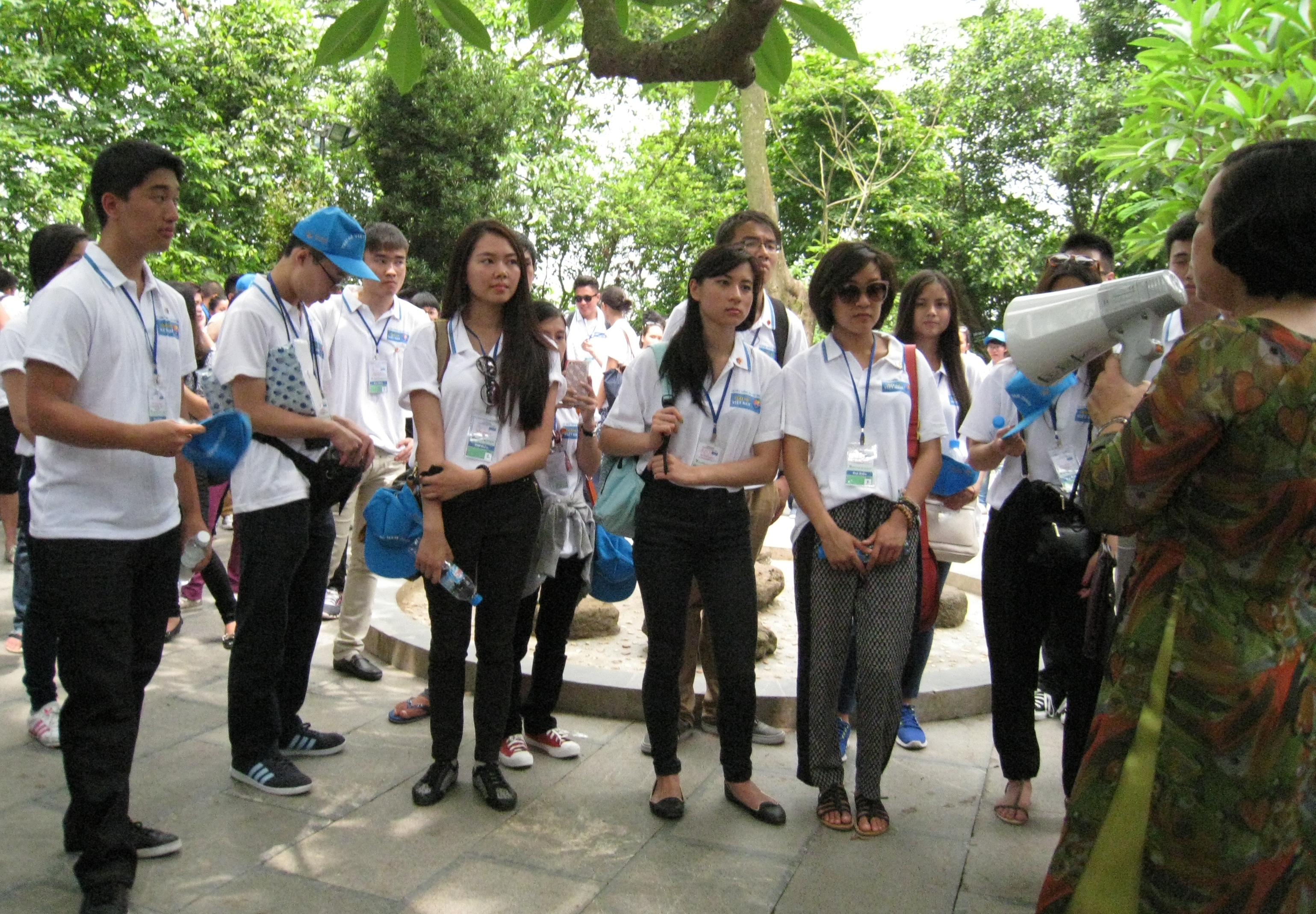 Rời đền thờ Quốc tổ Lạc Long Quân ra xe ô tô trở về Hà Nội kết thúc cuộc hành trình tham quan đền Hùng, một bạn thanh niên người Campuchia gốc Việt bất ngờ mượn micro từ tay cô hướng dẫn viên: Cháu xin cảm ơn Ban tổ chức và cảm ơn cô rất nhiều đã giải thích cho các cháu hiểu biết về lịch sử của người Việt Nam. Xin cảm ơn.