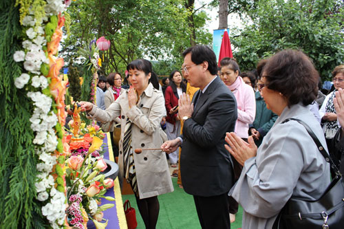 Đại sứ Việt Nam tại Pháp Dương Chí Dũng và phu nhân tham gia lễ tắm Phật