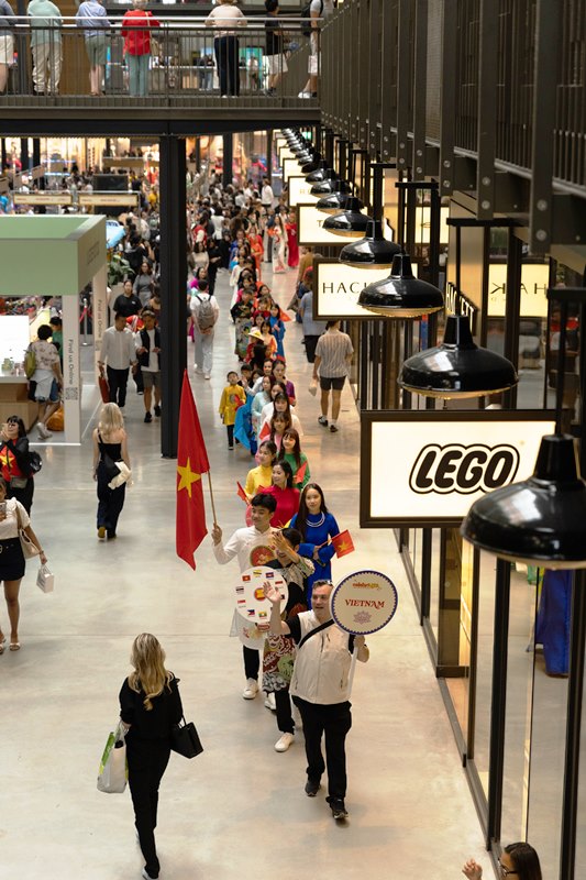 Màn nhảy Bắc Bling của nhóm BBVTALENTS khuấy động sân khấu, lan tỏa năng lượng trẻ trung và sức sống hiện đại của thế hệ mới. Đoàn diễu hành với trang phục áo dài đi qua những tuyến đường chính của Battersea Power Station – nơi sự kiện diễn ra, trở thành điểm nhấn đầy xúc động với sắc màu rực rỡ của những tà áo dài tung bay, tô đậm vẻ đẹp truyền thống và niềm tự hào dân tộc. Bên cạnh đó, màn trình diễn thời trang áo dài Love Collection trên chất liệu lụa tơ tằm Salakhe đã đưa người xem vào hành trình của nghệ thuật, nơi nét cổ truyền gặp gỡ những sáng tạo đương đại. Những tràng pháo tay, những ánh mắt ngưỡng mộ và những bức hình rực rỡ được chia sẻ khắp mạng xã hội chính là minh chứng cho thành công của đoàn Việt Nam trong việc quảng bá văn hóa, để “thương hiệu Việt Nam” trở thành một phần đáng nhớ của đại lễ hội này.