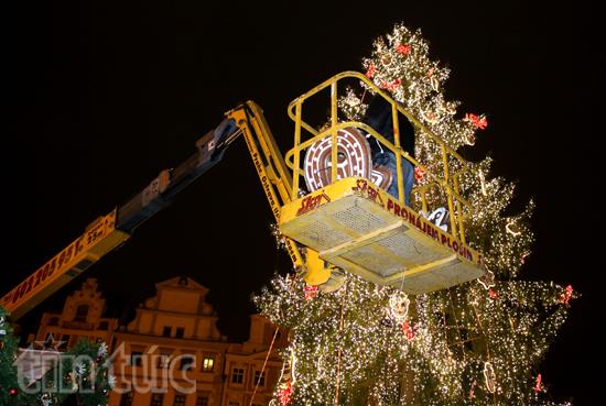 | Cây thông Hoàng hậu đang được lắp những bóng đèn cuối cùng.Ảnh:baotintuc.vn |