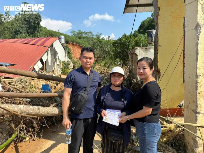 Thành viên đại diện Hiệp hội VKBIA trao tiền mặt động viên gia đình bị thiệt hại nặng bởi bão lũ tại Yên Bái. |