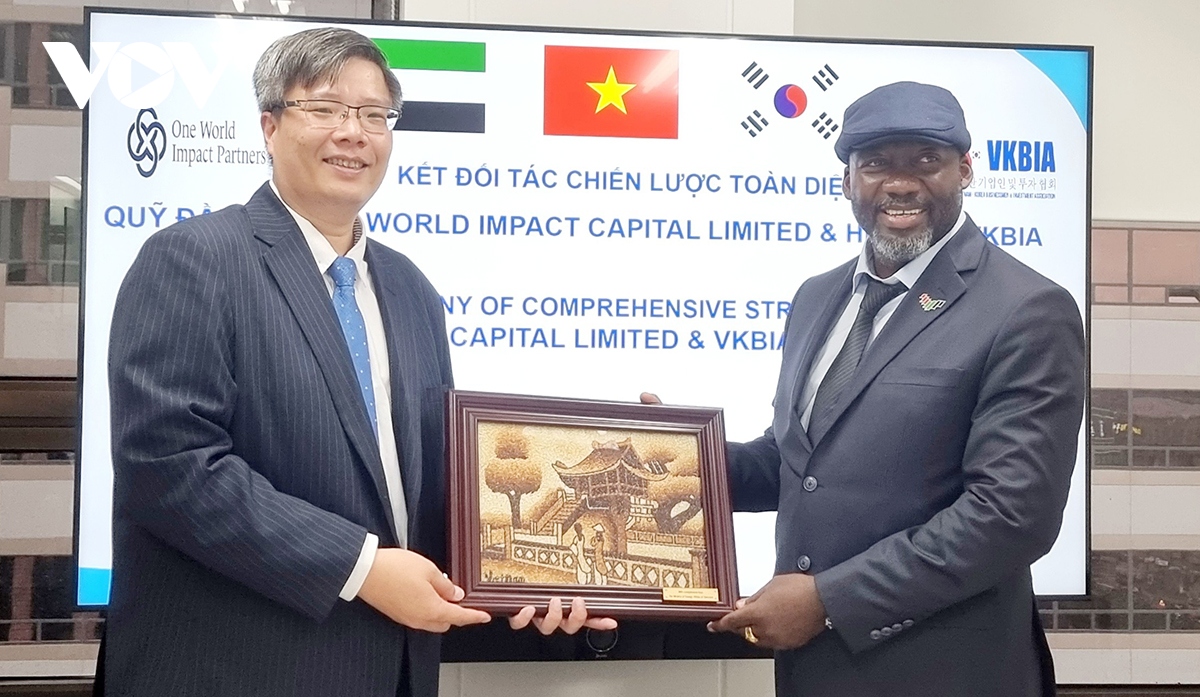 (VOV5) - Việc ký hợp tác tác chiến lược toàn diện với Quỹ đầu tư One World Impact Capital Limited tạo dấu mốc quan trọng cho việc hợp tác trong lĩnh vực đầu tư giữa UAE, Hàn Quốc và Việt Nam, thúc đẩy sự phát triển của thương mại toàn cầu, đóng góp cơ bản vào tăng trưởng kinh tế của Việt Nam, Hàn Quốc và UAE.