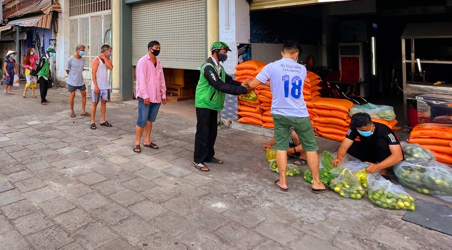 Trao hoa quả, thực phẩm thiết yếu cho bà con gặp khó khăn ở Thành phố Hồ Chí Minh. |