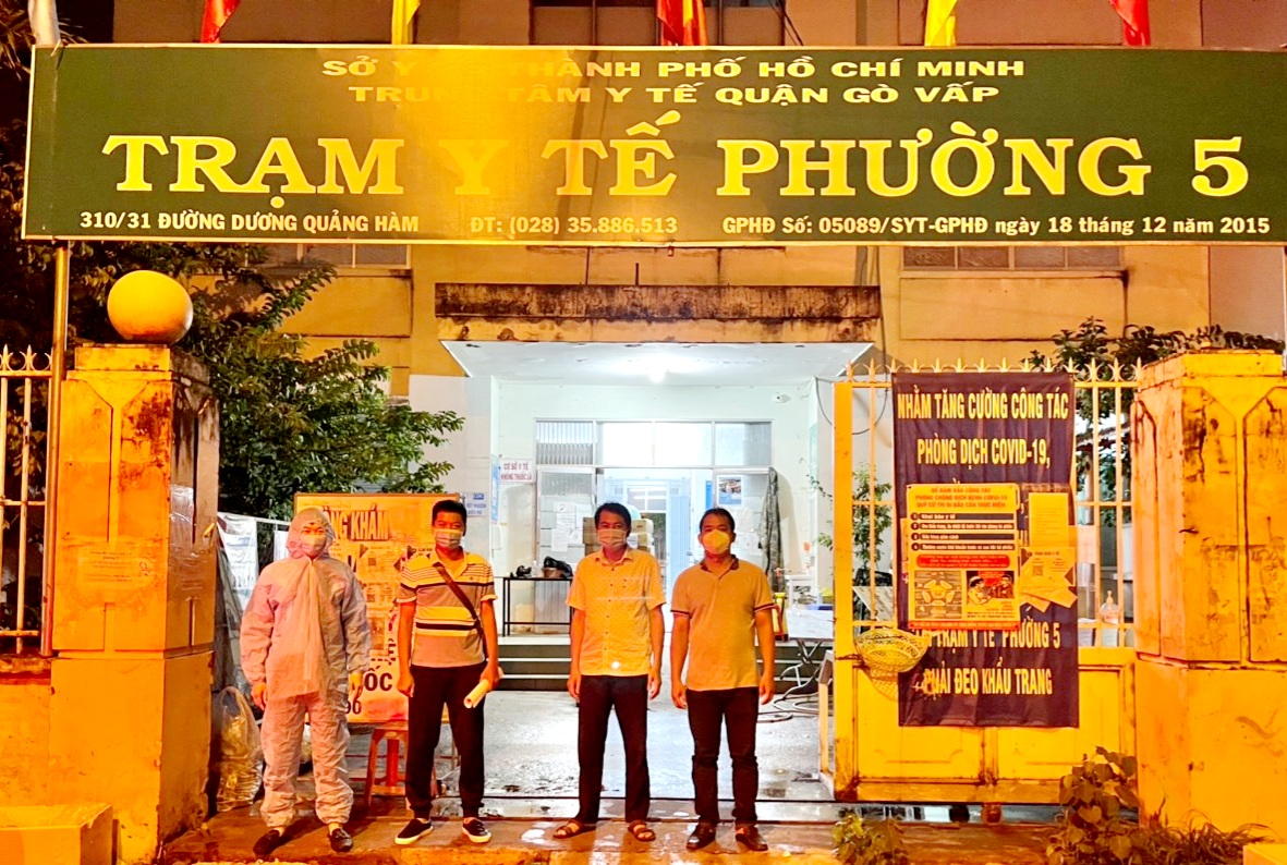 Trao hỗ trợ cho Trạm Y tế Phường 5, quận Gò Vấp - một trong những nơi cao điểm diễn biến dich bệnh. |