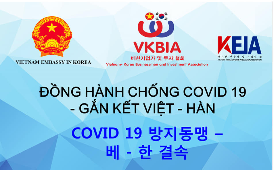 Chiều 9/4, đại diện Hiệp hội Doanh nhân & Đầu tư Việt Nam - Hàn Quốc (VKBIA) và Hội Chuyên gia - Trí thức Việt Nam - Hàn Quốc (VKEIA) đã thông qua Đại sứ quán Việt Nam tại Hàn Quốc gửi tặng 3.000 khẩu trang tới cộng đồng người Việt Nam đang sinh sống, học tập và làm việc tại Hàn Quốc.