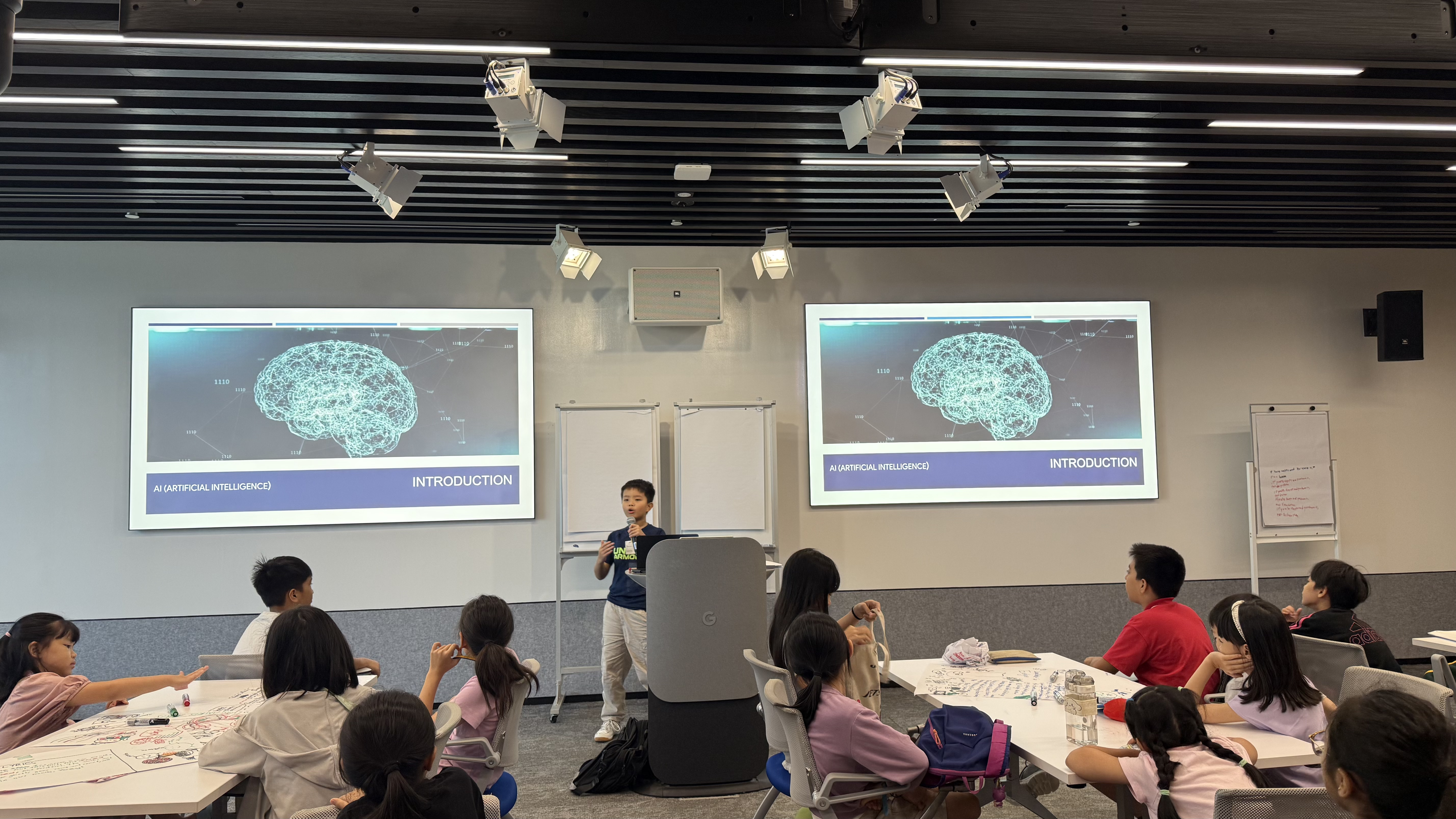 Workshop đầu tiên có chủ đề "Trải nghiệm về trí tuệ nhân tạo (AI) và An toàn Internet" dành cho các em trong độ tuổi từ 8-16. Các diễn giả giàu kinh nghiệm từ Google APAC, Interpol và A*STAR (Cơ quan Khoa học, Công nghệ và Nghiên cứu Singapore) có những chia sẻ thực tiễn, truyền cảm hứng và định hướng phát triển cho thế hệ trẻ. Điểm nhấn nổi bật của chương trình là các em được thực hành trực tiếp, học cách ứng dụng AI trong đời sống; Nhận diện rủi ro, bảo vệ bản thân trước các mối đe dọa trên không gian mạng.