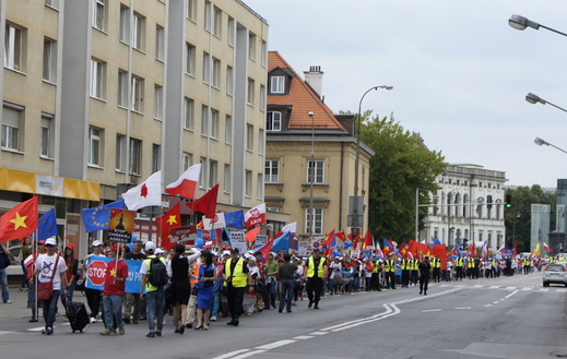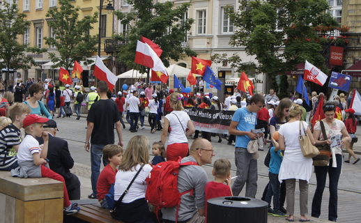 Sau khi tập trung trước dại sứ quán Trung Quốc, đoàn biểu tình đã tuần hành qua các khu phố ở thành cổ Warszawa. Rất nhiều du khách và người dân Ba Lan đã theo dõi, chụp ảnh về cuộc biểu tình và đọc các tờ rơi do các cháu thiếu nhi và những người biểu tình phân phát.