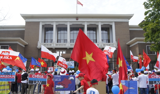 Tập trung trước cửa Đại sứ quán Trung Quốc tại Ba Lan.