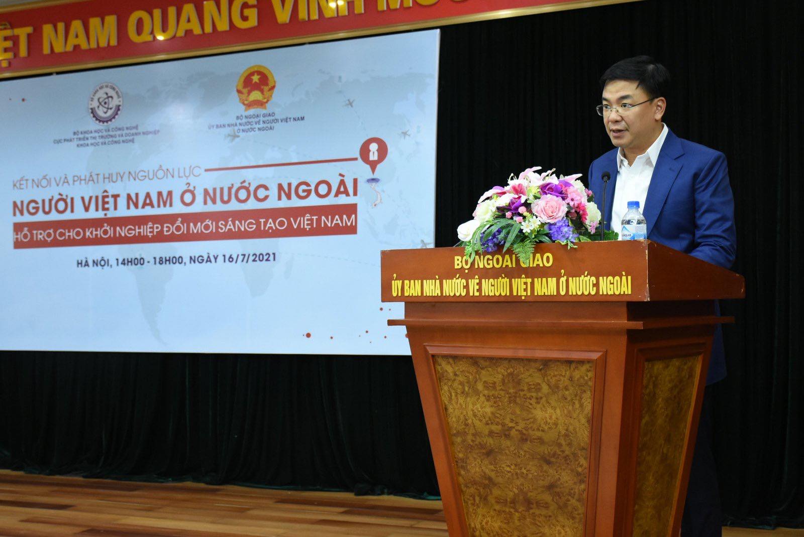 Hội thảo “Kết nối và phát huy nguồn lực người Việt Nam ở nước ngoài hỗ trợ cho khởi nghiệp đổi mới sáng tạo” diễn ra chiều 16/7 tại Hà Nội do Ủy ban Nhà nước về người Việt Nam ở nước ngoài, Bộ Ngoại giao và Cục Phát triển Thị trường và Doanh nghiệp Khoa học và Công nghệ, Văn phòng Đề án “Hỗ trợ hệ sinh thái khởi nghiệp đổi mới sáng tạo quốc gia đến năm 2025” (gọi tắt là Văn phòng Đề án 844), Bộ Khoa học và Công nghệ phối hợp tổ chức.