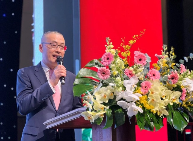 Đại sứ Vũ Quang Minh phát biểu Chúc mừng Năm mới tại Tết cộng đồng của người Việt tại Cộng hòa Liên bang Đức. Ảnh: TTXVN |