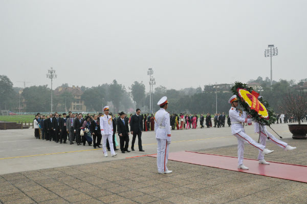 Buổi sáng,Thứ trưởng Ngoại giao, Chủ nhiệm Ủy ban NNVVNONN Nguyễn Quốc Cường đã chủ trì các hoạt động quan trọng : vào lăng viếng Chủ tịch Hồ Chí Minh, đặt vòng hoa tại Đài tưởng niệm các anh hùng liệt sĩ, dâng hương tại Điện Kính Thiên ở Hoàng Thành Thăng Long, làm lễ trồng cây nêu đón chào năm mới Kỷ Hợi, dâng hoa, dâng hương tại tượng đài Lý Thái Tổ. Chia sẻ cảm xúc của mình, anh Peter Hồng, kiều bào Ausatralia chia sẻ: