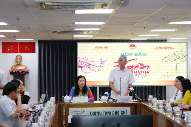 Sáng 15/1, Thứ trưởng Bộ Ngoại giao, Chủ nhiệm Ủy ban Nhà nước về người Việt Nam ở nước ngoài Lê Thị Thu Hằng, cùng Phó Chủ tịch UBND TPHCM Võ Văn Hoan, chủ trì buổi họp báo về chương trình Xuân quê hương năm 2024 tại thành phố Hồ Chí Minh.