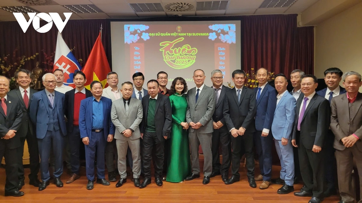(VOV5) - Chương trình “Xuân Quê hương 2025” mừng xuân mới tại Bratislava vừa được long trọng tổ chức thu hút đông đảo sự tham dự của đại diện các tổ chức hội đoàn của cộng đồng cùng đông đảo bà con người Việt đang sinh sống, làm ăn, học tập tại Slovakia, bạn bè nước sở tại...