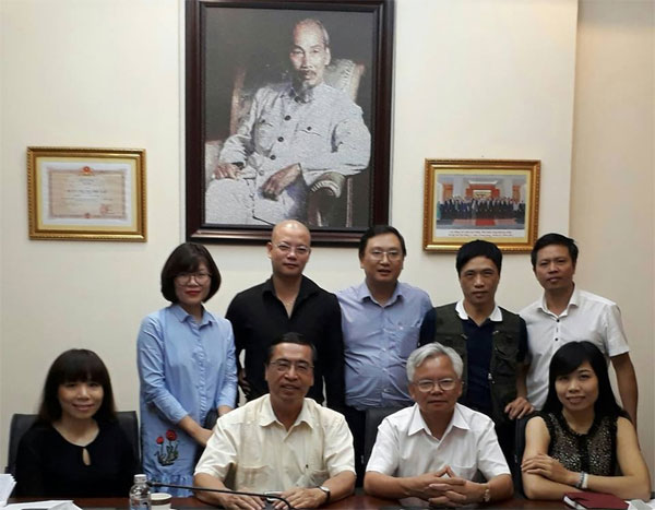 Hàng đầu: Giáo sư Tạ Ngọc Tấn (thứ hai từ phải) và Đại sứ Nguyễn Phú Bình (thứ hai từ trái) tại buổi họp bàn tổ chức Ngày Quốc Tổ Việt Nam toàn cầu