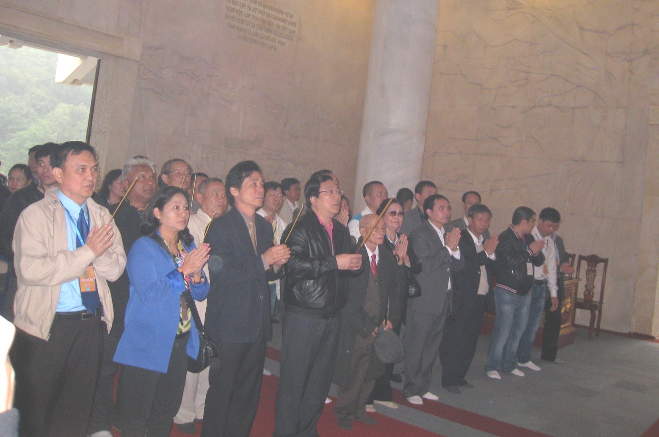 | Ông Đặng Văn Dũng cùng đoàn kiều bào tại đền thờ Chủ tịch Hồ Chí Minh ở Cao Bằng. |