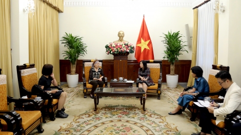 Thứ trưởng Bộ Ngoại giao, Chủ nhiệm Ủy ban Nhà nước về người Việt Nam ở nước ngoài Lê Thị Thu Hằng tiếp bà Trần Tố Nga,