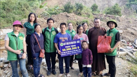 (VOV5) - Bên cạnh những chương trình định kỳ vẫn diễn ra đều đặn, các thành viên của Hội từ thiện Sen vàng lại lặn lội đến thăm hỏi và sẻ chia với các gia đình đang phải gánh chịu thiệt hại nặng nề do cơn bão số 3.