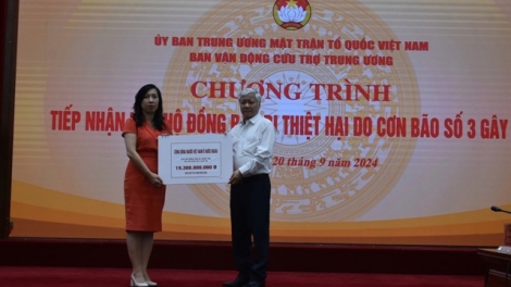 (VOV5) - Thứ trưởng Bộ Ngoai giao, Chủ nhiệm Ủy ban Nhà nước về NVNONN Lê Thị Thu Hằng thay mặt cộng đồng người Việt tại các nước trao số tiền gần 19,3 tỷ đồng cho Ủy ban Trung ương Mặt trận Tổ quốc Việt Nam.