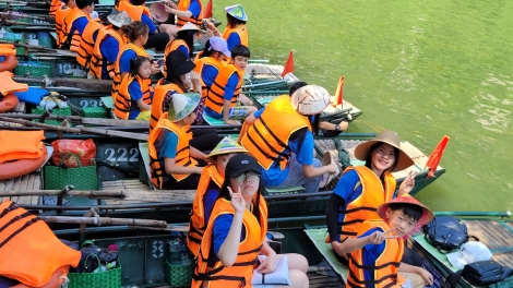 Đoàn thiếu nhi và giáo viên kiều bào Hàn Quốc thăm danh thắng Tràng An, cố đô Hoa Lư ở Ninh Bình