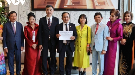 (VOV5) - Đại diện Diễn đàn Phụ nữ Việt Nam tại châu Âu đã trao số tiền 7.100 euro cho đại diện Hội người Việt tại Ba Lan.