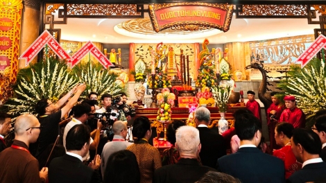 (VOV5) - Tại Bến Nhà Rồng, Chủ tịch nước Võ Văn Thưởng, các kiều bào tiêu biểu thả cá tiễn ông Công ông Táo chầu trời, với ngụ ý “cá vượt Vũ môn”, biểu tượng cho sự thăng hoa, tinh thần vượt khó.