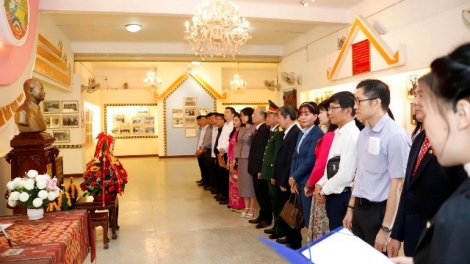 Đoàn các cơ quan đại diện Việt Nam tại Lào dâng hoa tưởng niệm Chủ tịch Kaysone Phomvihane và Chủ tịch Souphanouvong