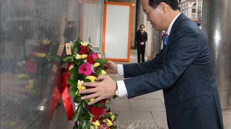 (VOV5) - Chủ tịch nước Võ Văn Thưởng và Đoàn đại biểu Việt Nam đã đến đặt hoa tại Biển tưởng niệm Chủ tịch Hồ Chí Minh tại tòa nhà New Zealand House ở thủ đô London.