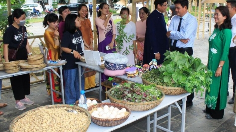 (VOV5) - Các học sinh trường Trung học Birkerød Gymnasium thăm không gian trưng bày ảnh giới thiệu văn hóa, lịch sử Việt Nam và twhwowgnr thức món ăn nổi tiếng của người Việt.
