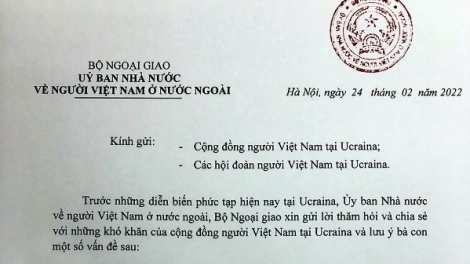 Thư ngỏ của Bộ ngoại giao Việt Nam gửi cộng đồng bà con người Việt tại Ucraina