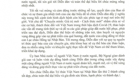 Thứ trưởng, Chủ nhiệm Ủy ban Phạm Quang Hiệu có thư chúc mừng Diễn đàn trí thức Việt Nam tại Nhật Bản lần thứ 2