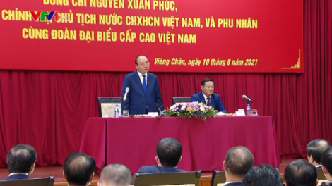 Chủ tịch nước Nguyễn Xuân Phúc thăm Đại sứ quán và cộng đồng người Việt Nam tại Lào