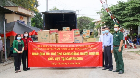 Liên hiệp Hữu nghị Cần Thơ, Tạp chí Thời Đại trao quà cho người Khmer gốc Việt tại Campuchia