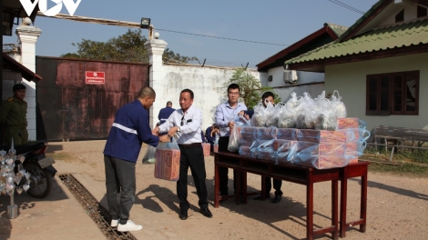 (VOV5) - Ông Nguyễn Duy Quận, Trưởng phòng Lãnh sự Đại sứ quán Việt Nam tại Lào đã trao 47 phần quà Tết cho 47 nghi phạm và phạm nhân Việt Nam đang bị giam tại trại giam Phontong.