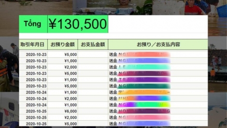 (VOV5) - Tính đến ngày 25/10, Hội Thanh niên Sinh viên Việt Nam tại Nhật Bản đã quyên góp được 130.500 Yen để ủng hộ đồng bào miền trung bị ảnh hưởng bởi lũ lụt, thiên tai.