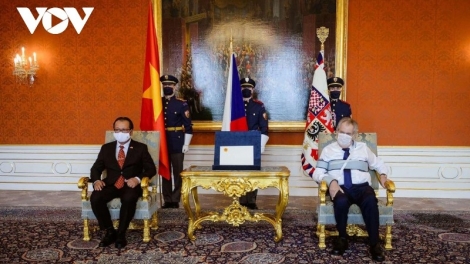 Đại sứ Việt Nam Thái Xuân Dũng trình Quốc thư lên Tổng thống Cộng hòa Czech Milos Zeman
