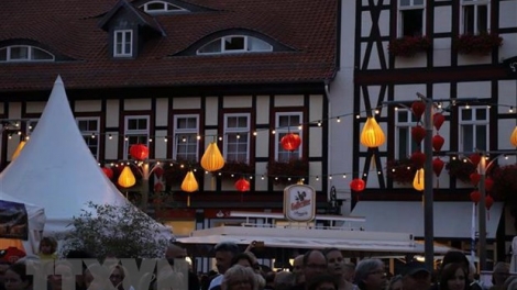 (VOV5) - Người dân và các du khách tham quan được chiêm ngưỡng sắc màu rực rỡ của những chiếc đèn lồng Hội An được ban tổ chức treo trên các con phố nhỏ ở thành phố Wernigerode.