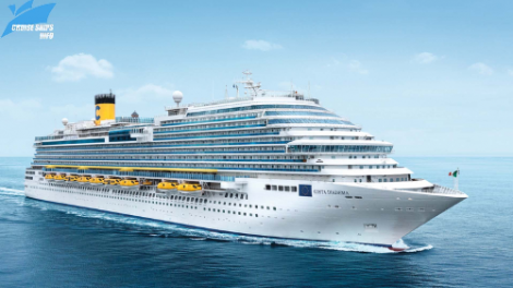(VOV5) -Với sức chứa hơn 5000 hành khách, con tàu Costa Diadema sẽ đi qua 4 vùng đất cảng chính của Pháp, Tây Ban Nha, đảo Baleares và đất nước Italia xinh đẹp.