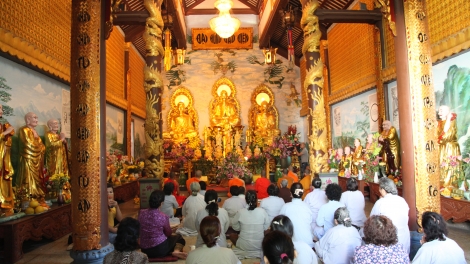 (VOV5) - Ngày 15/01, hàng trăm Tăng ni Phật tử đã tề tựu tại chùa Phật tích, ngôi chùa lớn của bà con Việt kiều ở thủ đô Vientiane, Lào dự buổi Lễ tất niên, tiễn đưa năm cũ do nhà chùa tổ chức.
