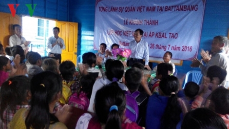 (VOV5) - Sáng 26/7, Tổng lãnh sự quán Việt Nam tại Battambang, Vương quốc Campuchia cùng với Tỉnh hội người Campuchia gốc Việt tại Battambangđã tổ chức khánh thành trường học cho con em Việt kiều tại xã Kaoh Chiveang, huyện Aek Phnom.
