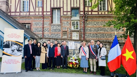 Dâng hoa tưởng niệm Chủ tịch Hồ Chí Minh tại Sainte-Adresse, Pháp