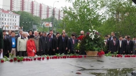 Thủ tướng đặt hoa, trồng cây lưu niệm bên tượng đài Bác Hồ tại Moscow