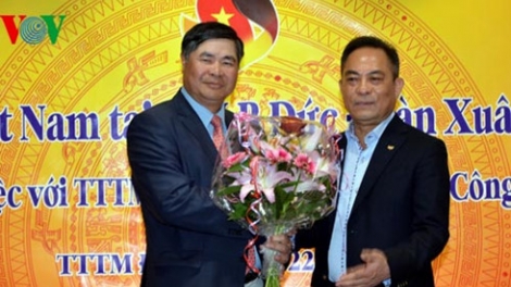 (VOV5) - Ngày 22/4, Đại sứ Đoàn Xuân Hưng cùng các cán bộ trong Đại sứ quán đã tới thăm và làm việc với Trung tâm thương mại Đồng Xuân và công ty Lehop ở Berlin.