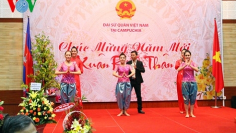 (VOV5)- Tối 24/1, nhân dịp chuẩn bị đón Tết cổ truyền Bính Thân 2016, Đại sứ quán Việt Nam tại Campuchia tổ chức Tết cộng đồng đón Xuân năm mới.